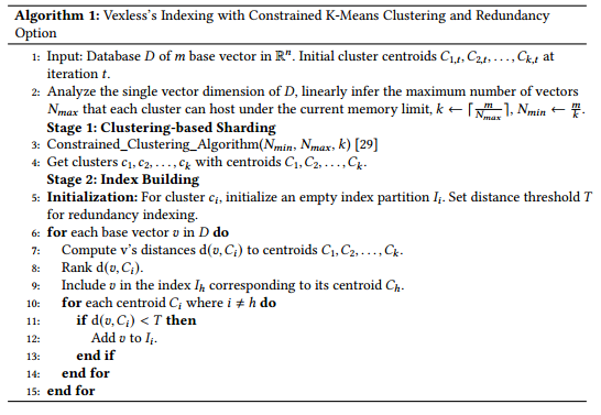 为了解决这个不平衡的分区问题,Vexless使用了的约束K均值(也可以视为平衡K-Means,算法1的前半部分所示),以产生最好的、平衡的结果。