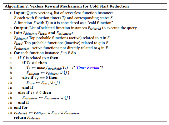 Rewind机制:Rewind作为初始化和奖励机制运行。在接收到随机查询向量q时,该方法首先以完整的生命周期结束任务相关的有状态函数(DEF),然后观察最近的查询工作负载,动态地改变云函数的生命周期,并在必要时刷新它们的“热”状态。这种启发式方法动态地调整保持每个云函数线程的存活时间。如果查询工作量很大,则延长保活时间,以减少频繁的冷启动。