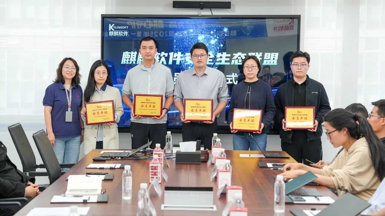 麒麟软件生态合作部总经理姚翎为新成员单位授牌