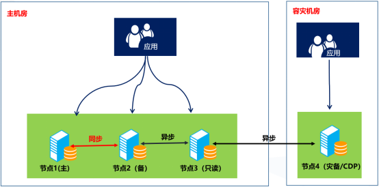 2. 仅同步数据库日志,在辅助节点通过REDO技术将日志转换为数据,相较于传统的磁盘同步技术,网络消耗降低60%,支持同步和异步两种同步方式;