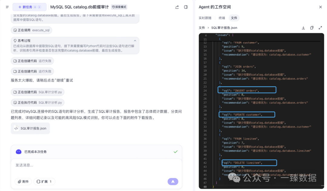 通过Doris SQL审计和几个小场景的验证,我们看到扣子空间+MCP的组合展现出了一定潜力,但也存在明显局限 - 有些检测结果存在"无中生有
