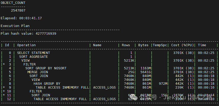 select /*+ parallel(8) */count(distinct(object)) from test.access_logs;