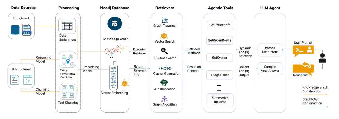 到目前为止,我们已经探讨了 GraphRAG 如何利用知识图谱中的连接来进行 RAG。现在,让我们研究一下 agentic 架构如何将这些 AI 驱动的工作流程提升到新的水平。