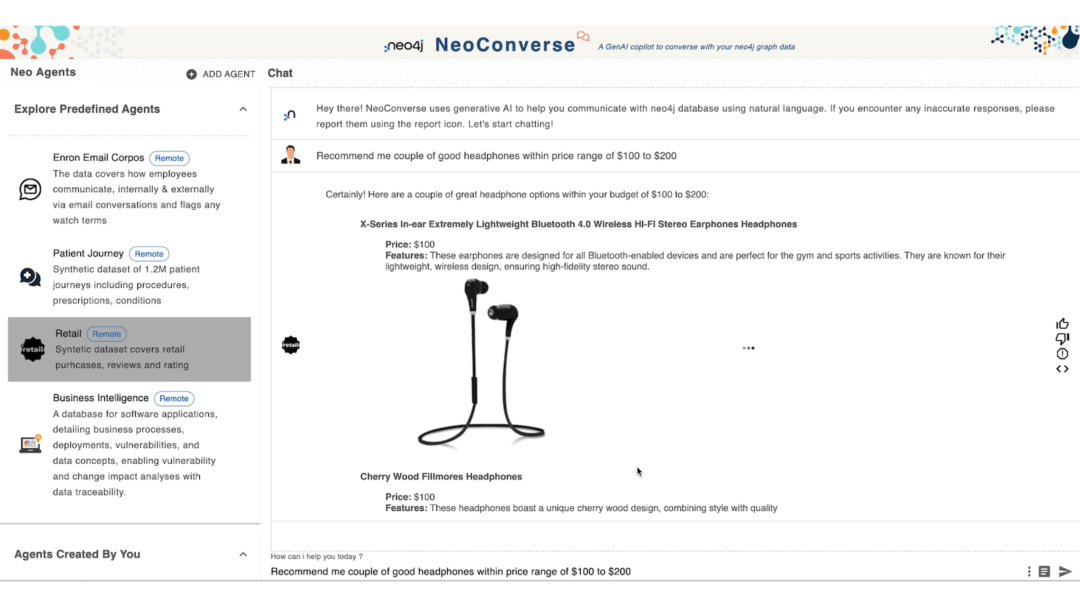 NeoConverse 是公开托管的,客户可以通过插入自己的 Neo4j 图数据库来随意使用。