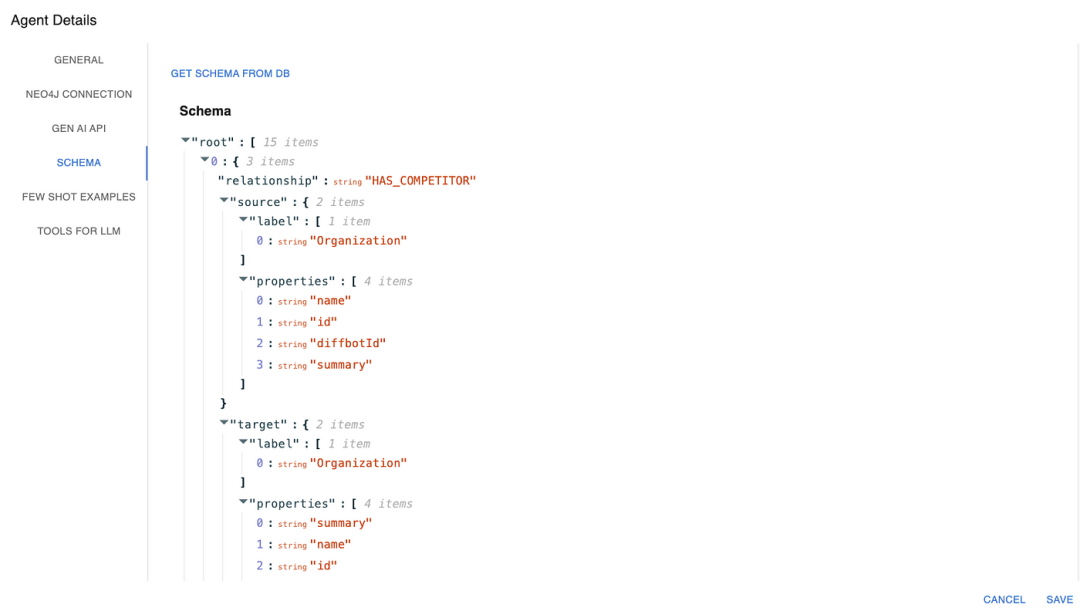 • 使用全文搜索查找 Palantir,因此用户无需在提示中提供确切的公司名称。 • 匹配所有传入和传出关系以获得组织的 360 度视图(HAS_INVESTOR、HAS_COMPETITOR、HAS_SUPPLIER、HAS_BOARD_MEMBER、HAS_CEO)。 • 使用向量搜索中的其他上下文对其进行扩充。 • 返回所有提取的见解以及可选的新闻上下文,以增强响应。