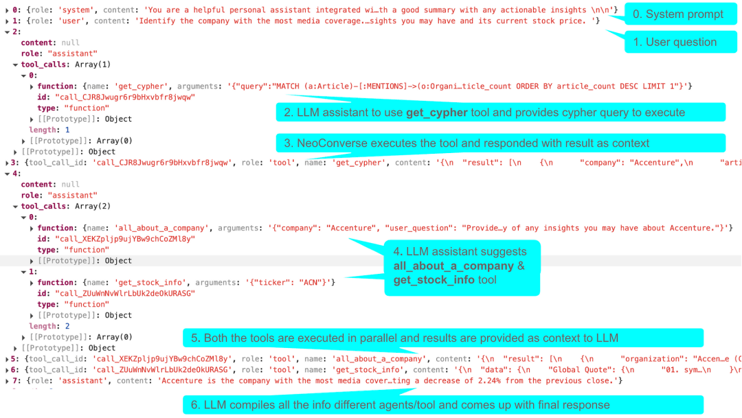 接下来,它选择一个关于公司和股票信息的工具(例如,all_about_a_company 和 get_stock_info)以获取关于结果公司及其当前价格的见解。