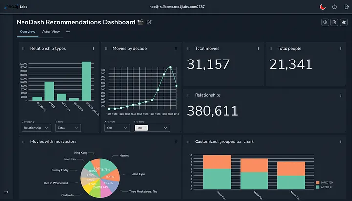NeoDash 易于设置,提供了一个灵活的低代码环境,方便用户创建数据驱动的仪表盘。作为 Neo4j Labs 的一部分,NeoDash 的实验版本可以免费使用。如果您需要更稳定且有官方支持的版本,Neo4j 也提供了带有企业级支持的商业版本。