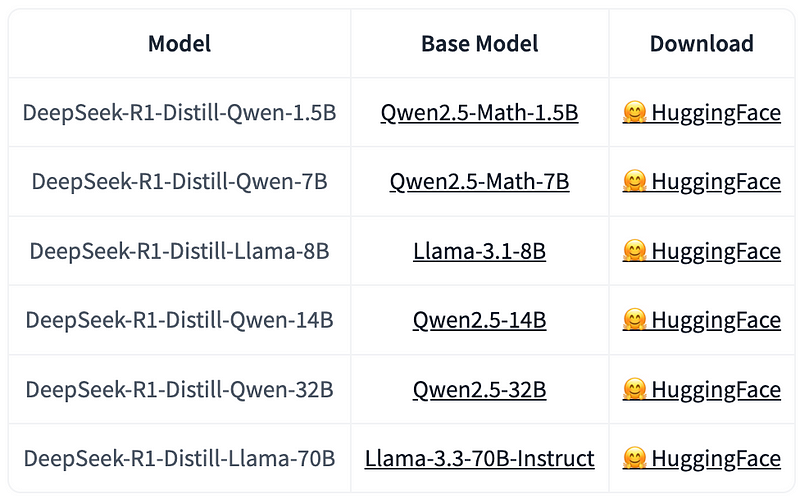 库。图 1 显示了 Deepseek-R1 蒸馏模型的列表,如其 HuggingFace 仓库所示,以及用于微调的基础模型。在资源受限的环境下,我们将使用 unsloth 在 HuggingFace 上提供的量化模型,特别是 Deepseek-R1 7B Q2_K 模型。