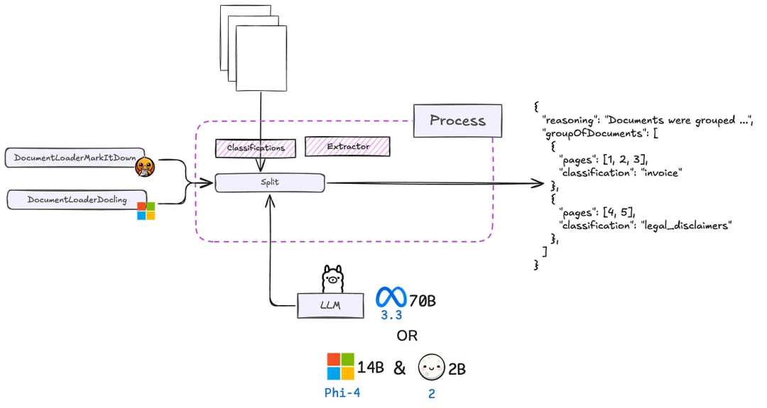 和一个本地模型(如Ollama、LocalAI等)。然后,我们构建一个流程,以单一管道加载、分类、拆分和提取数据。