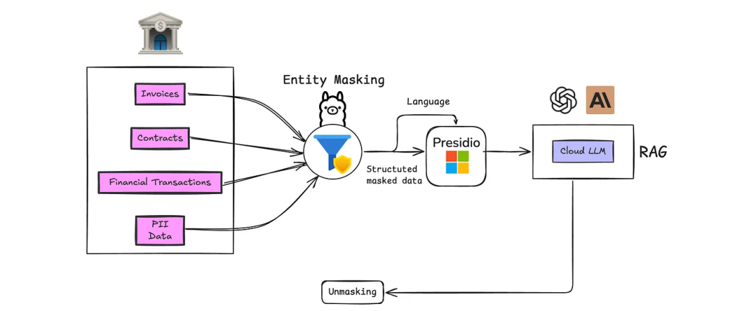 在这个大语言模型(LLM)的新时代,银行和金融机构面临一定的劣势,因为前沿模型由于硬件要求几乎不可能进行本地部署。然而,银行数据的敏感性带来了显著的隐私问题,尤其是当这些模型仅作为云服务提供时。为了解决这些挑战,组织可以选择本地部署或小型语言模型(SLM)的方案,以确保数据保存在内部,避免敏感信息泄露。这种方法能够在利用先进的LLM能力(本地部署或最小化外部调用)的同时,严格遵守诸如GDPR、HIPAA或各类金融指令等法规。