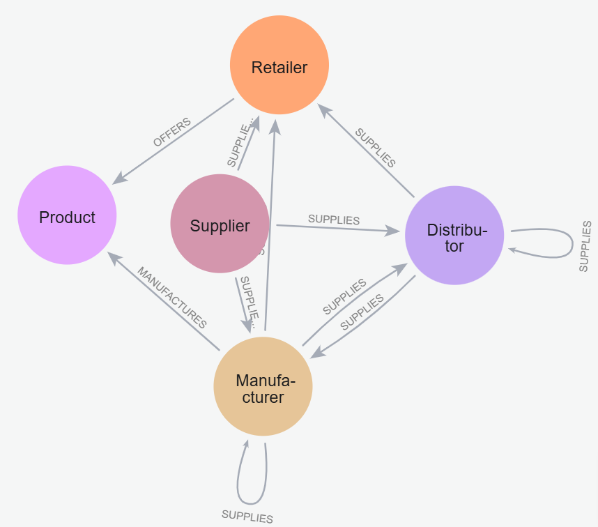 例如,在商业环境中,供应商、位置和产品等实体可以被建模为节点,节点之间通过 “供应” 或 “位于” 等关系连接。这种结构使我们能更直观地理解数据中不同元素的关系,非常适合需要导航复杂数据连接的任务。