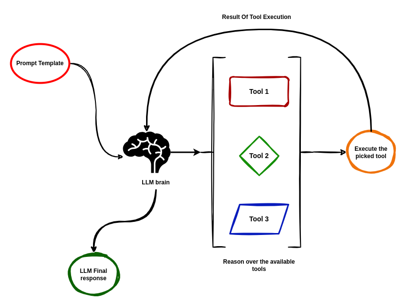 如今,您可能已经注意到,生成式 AI(Generative AI, GenAI)的发展正朝着智能体化方向迈进,至少在撰写本文时是这样。因此,理解什么是智能体非常重要,我们在 LangChain 的入门部分已经介绍过。在本节中,我们将更专注于构建用于聊天机器人的智能体。您还记得这张图吗?