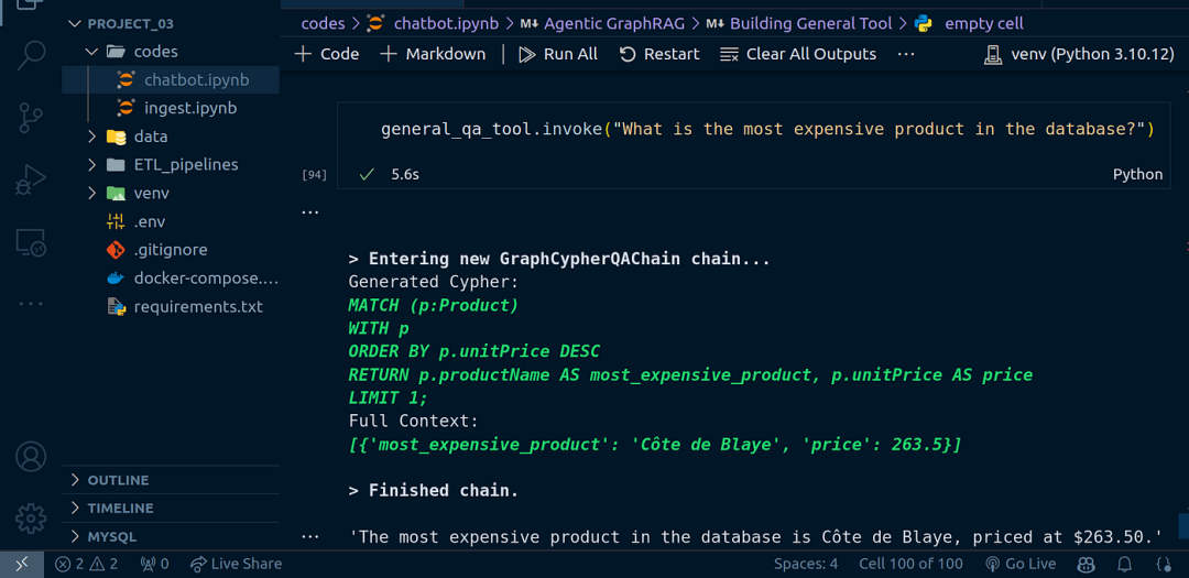 • 构建另一个工具,将自然语言转换为 Cypher 查询代码