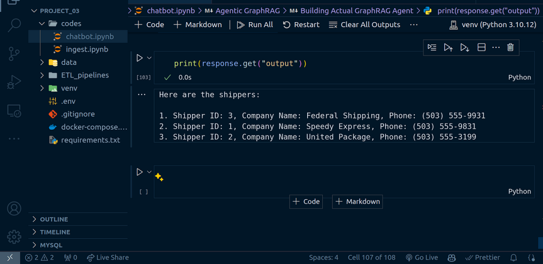 它并没有完全回答“每个托运人运送了多少订单”。无论如何,这就是智能体,它能够选择正确的工具。