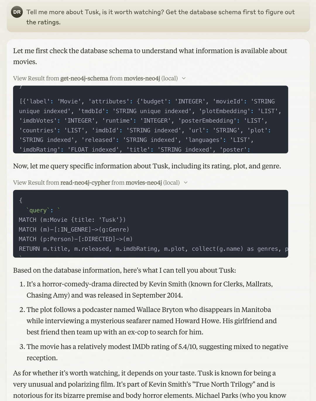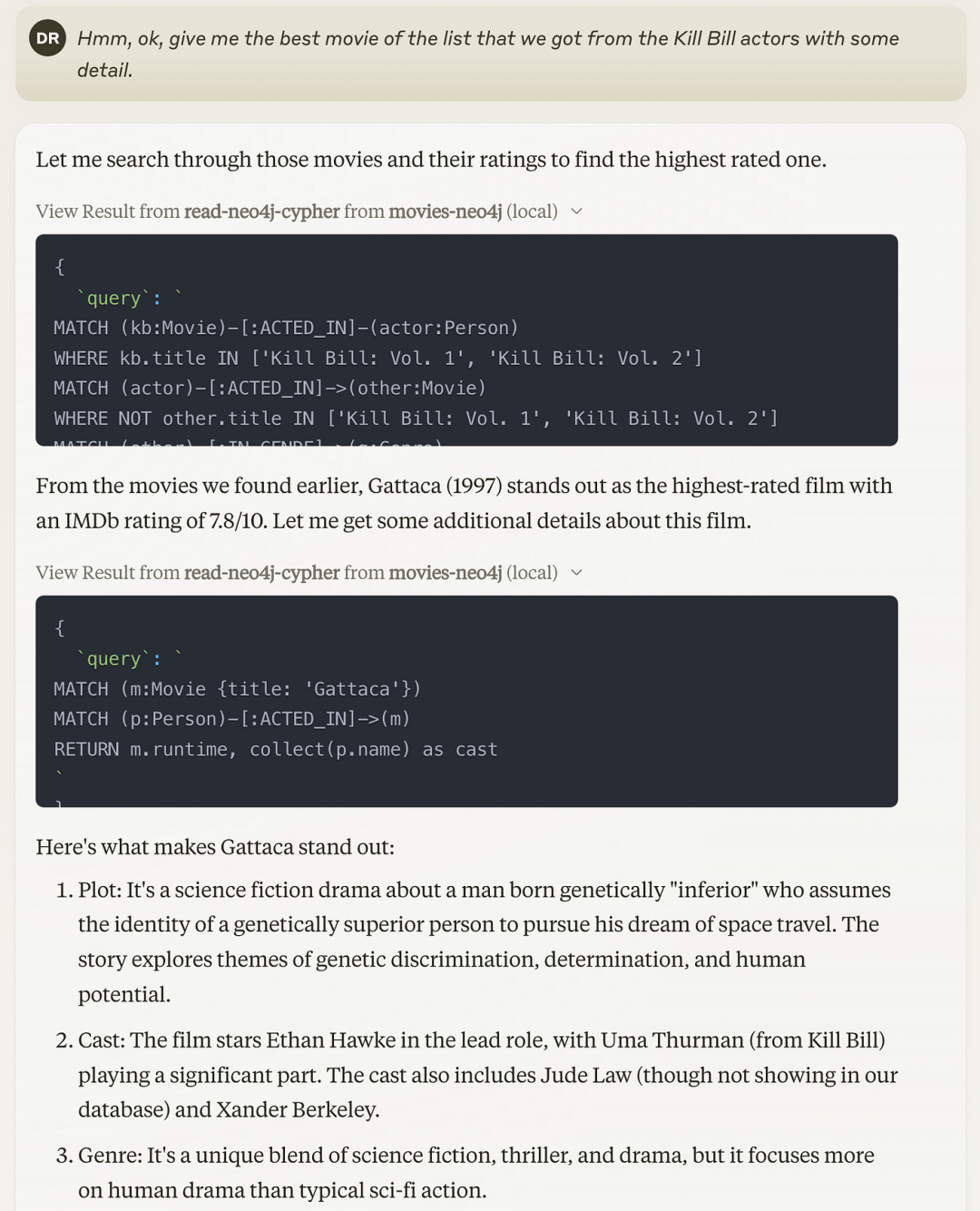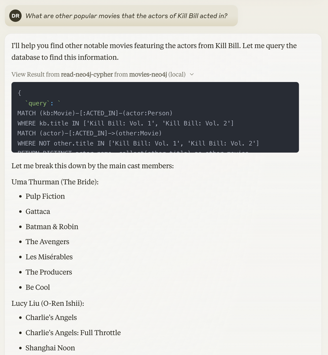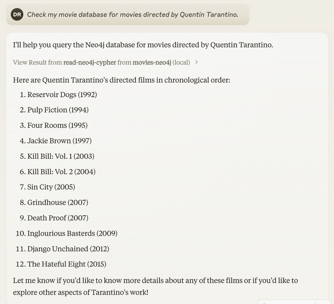 以下是如何使用MCP从LLM查询Neo4j数据库的简单示例。
