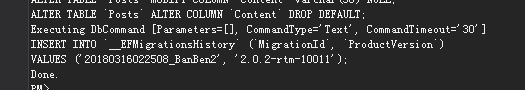 VALUES ('20180316022508_BanBen2', '2.0.2-rtm-10011');当然,这个脚本可以自定义需要迁移的版本号.文件名,需要生成迁移脚本的上下文(多个上下文的情况).
