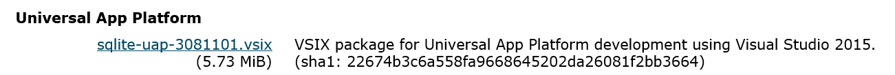 要使用sqlite,首先是要从sqlite.org下载SQLite啦,附上下载页的链接http://sqlite.org/download.html,然后选择UAP的版本: