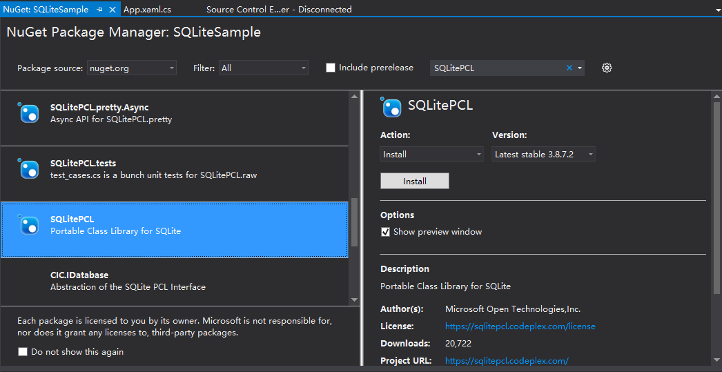 右键点击工程名,选择Manage NuGet Packages…,然后搜索SQLitePCL,Install即可。