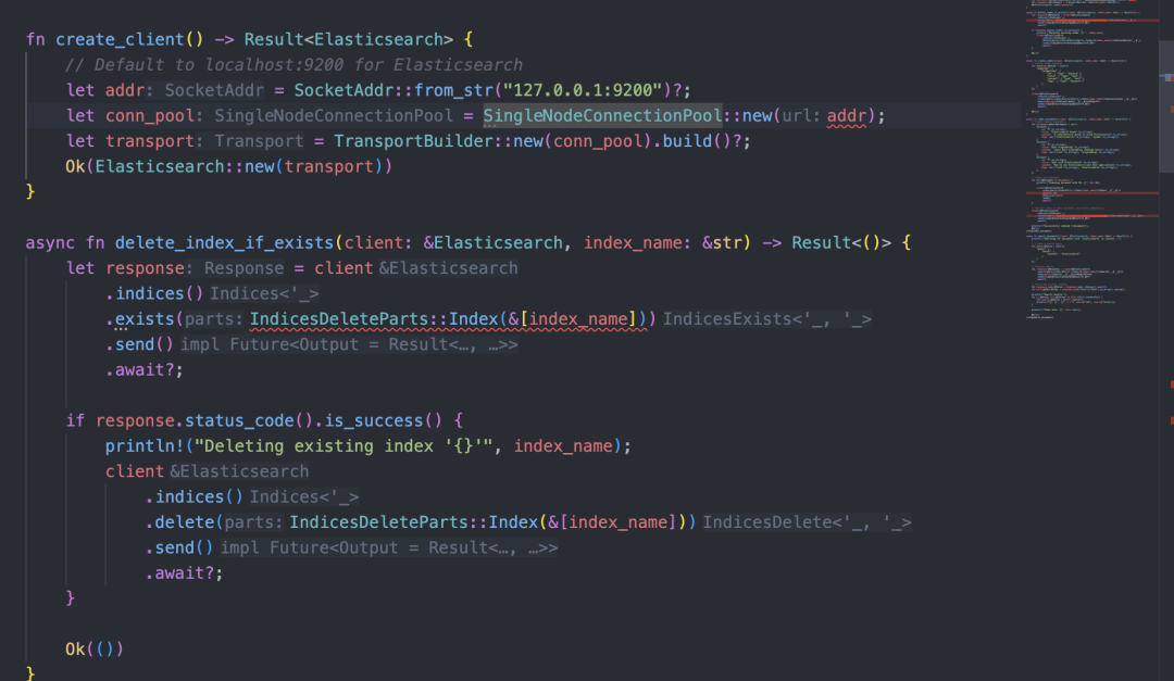 然后使用 elasticsearch-rs 编写代码和 Elasticsearch 进行交互,