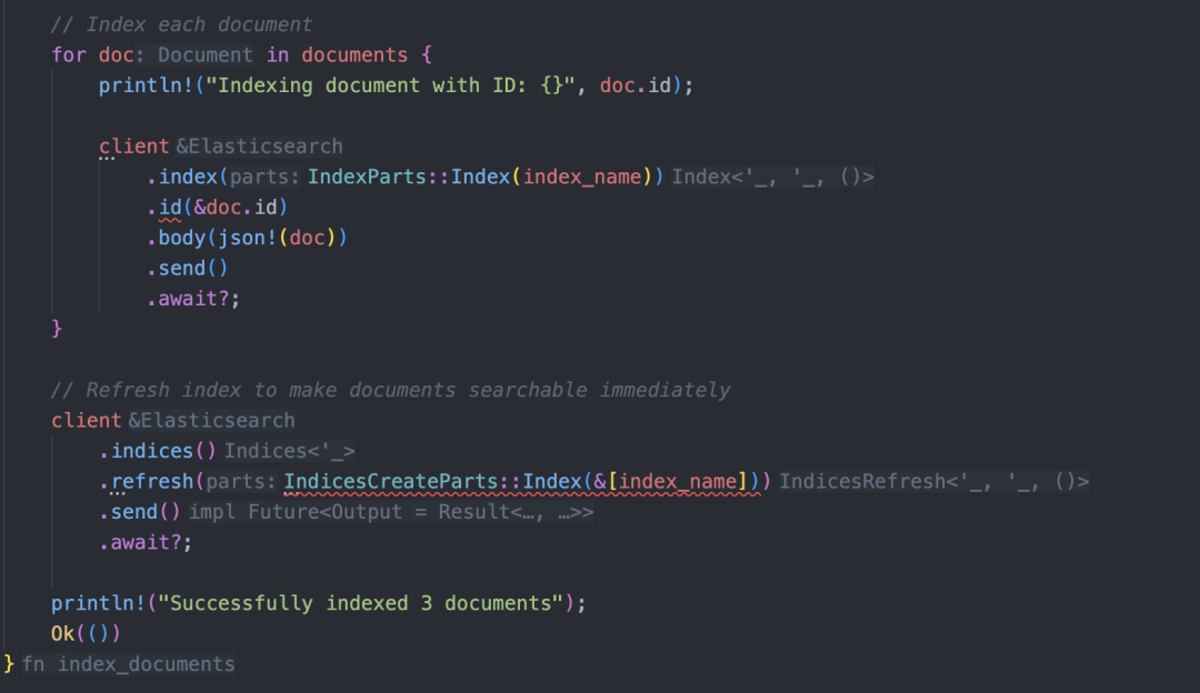 133 | .refresh(IndicesCreateParts::Index(&[index_name]))