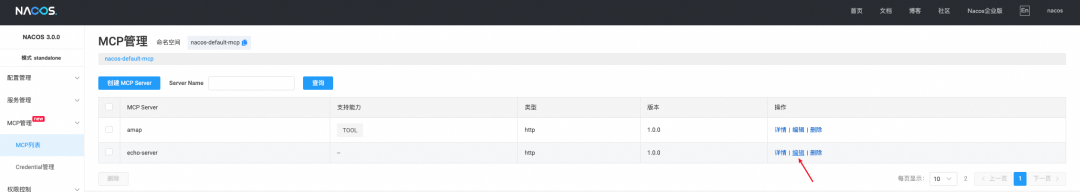 MCP Server 启动之后即可自动注册到 Nacos 上,可以通过 Nacos MCP 进行界面信息管理了,更改实时生效;2.2.2 Python 构建 MCP Server,更换注解,自动注册到 Nacos