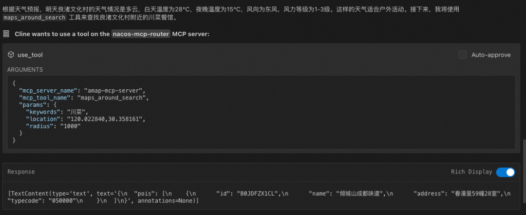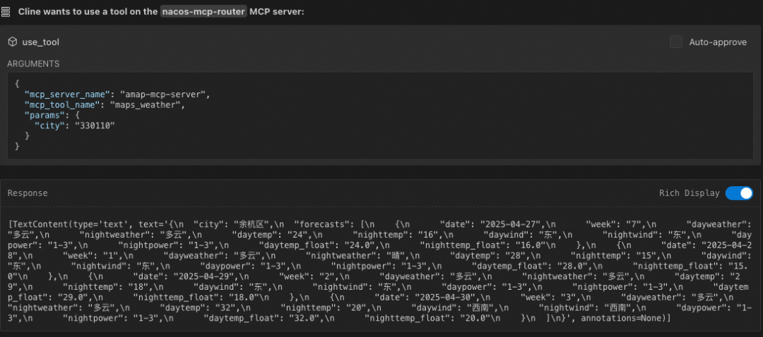 - MCP 返回格式 JSON 转换 XML:和大模型交互都有体感,对模型来说,JSON 没有 XML 格式好用,所以在 MCP 返回信息格式上,Nacos 可以帮助 MCP 把返回格式从 JSON 变成 XML,方便大模型理解;