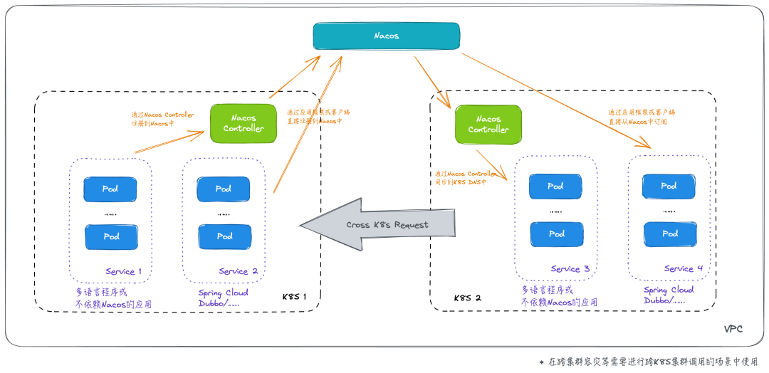Nacos-Controller 就是为解决上述问题而诞生的。它可以帮助同步 K8s 的 Service 到 Nacos ,也可以支持 K8s 的 configmap、secret 与 Nacos 配置的双向同步。Nacos Controller 2.0 支持将 Kubernetes 集群特定命名空间下的 Service 同步到 Nacos 指定命名空间下。用户可以通过 Nacos 实现对 Kubernetes 服务的服务发现。以此实现跨 K8S 集群的服务发现和访问,或实现 K8S 集群与非 K8S 集群间的服务发现和访问,解决容灾备份,平滑迁移等一系列高可用,稳定性相关的高级服务发现场景。