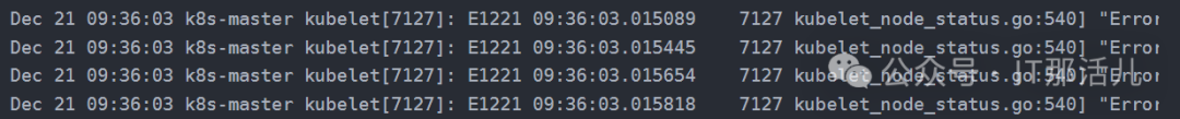 发现此时kube-apiserver容器已经退出,查看容器日志是否有异常信息。