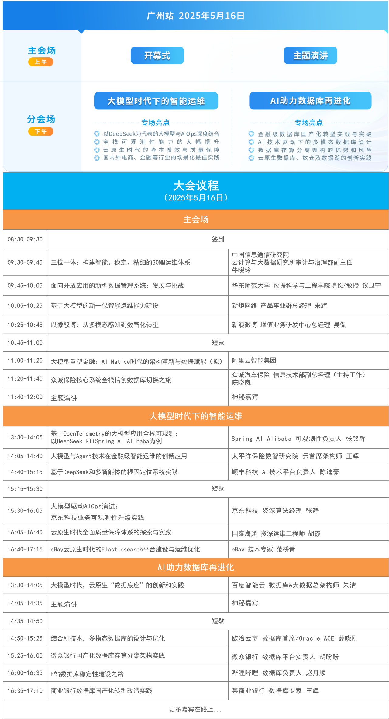 本次大会将聚焦于大模型、AI Agent等新兴技术推动及融合之下,运维与数据库两大领域的发展趋势和创新应用,部分演讲嘉宾及干货议题先睹为快: