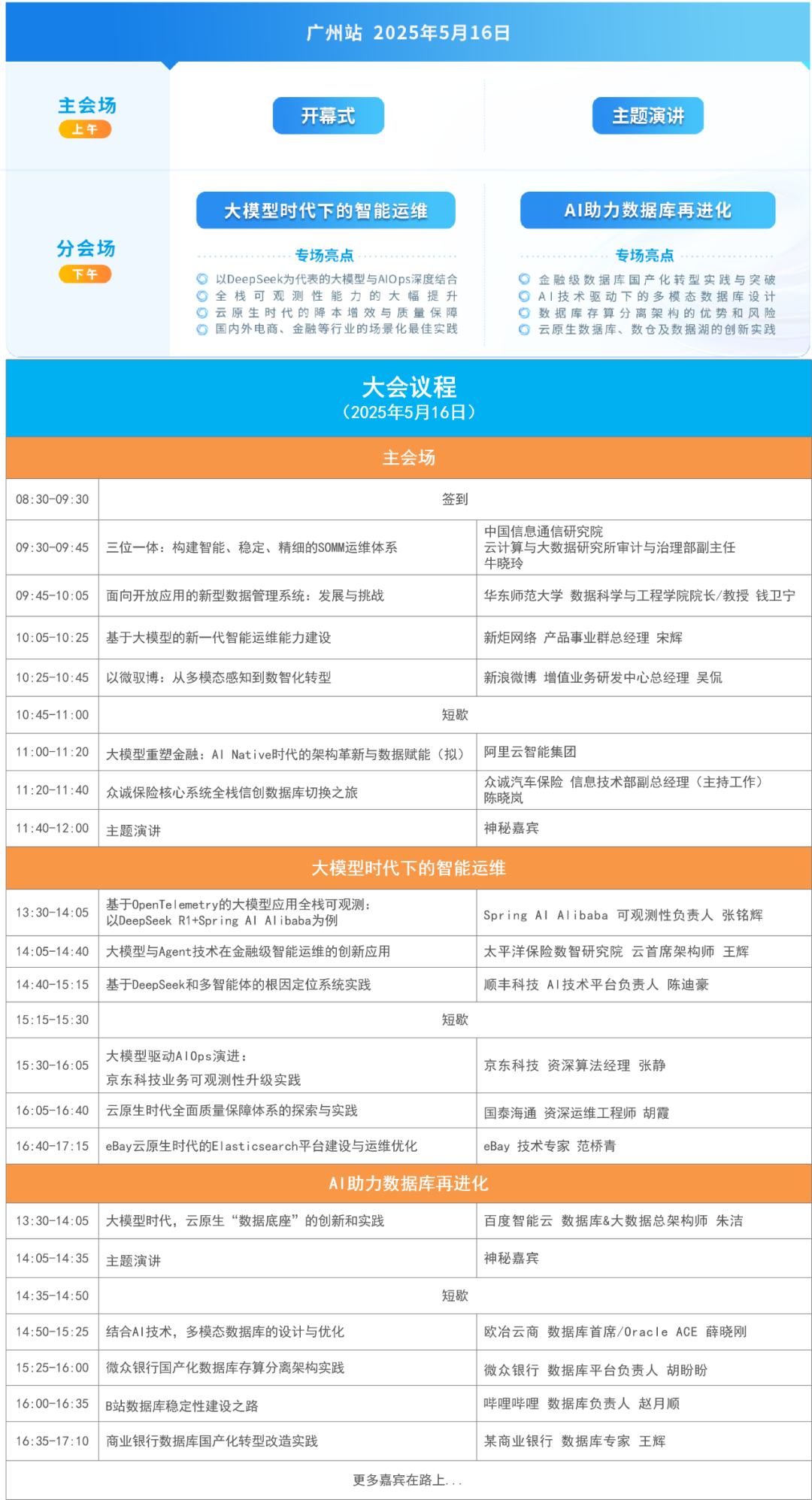 本次大会将聚焦于大模型、AI Agent等新兴技术推动及融合之下,运维与数据库两大领域的发展趋势和创新应用,部分演讲嘉宾及干货议题先睹为快: