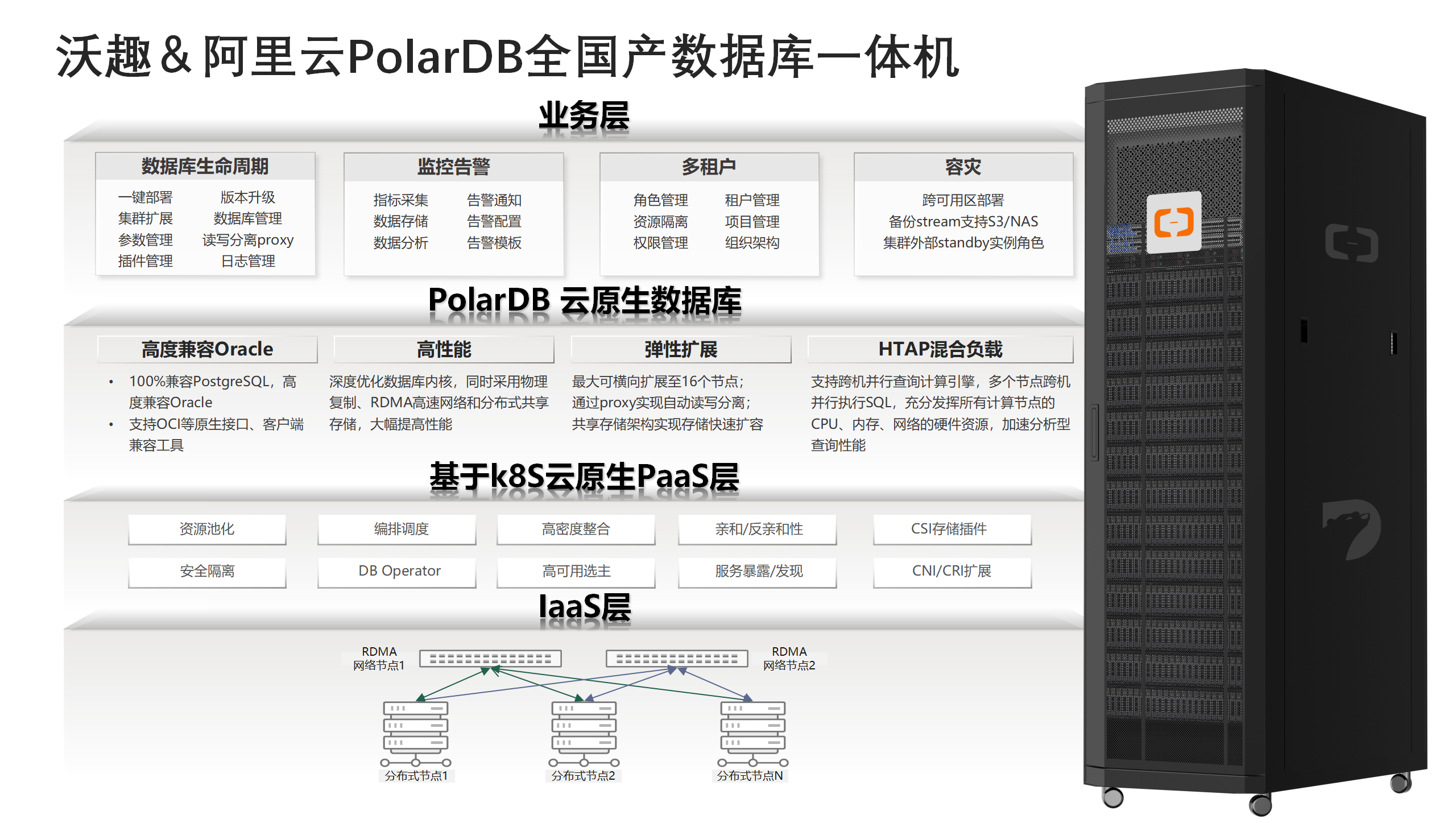 基于沃趣科技在行业内的多年实践和技术积累,结合PolarDB领先的数据库技术,双方聚焦高负载核心业务需求,共同打造更加贴合企业用户需求的一体化数据库解决方案:沃趣&阿里云PolarDB数据库一体机,旨在为各行业的数字化转型提供强大的动力,并推动国产数据库技术生态的繁荣发展。