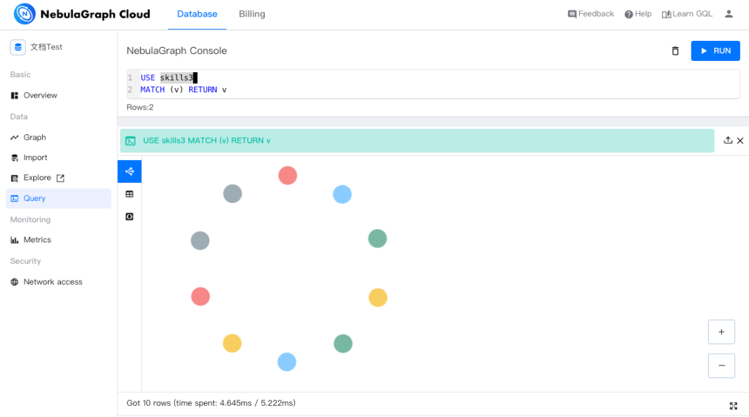 使用 GQL 语句,可以把 skills3 替换成你自己的 Graph 名称。