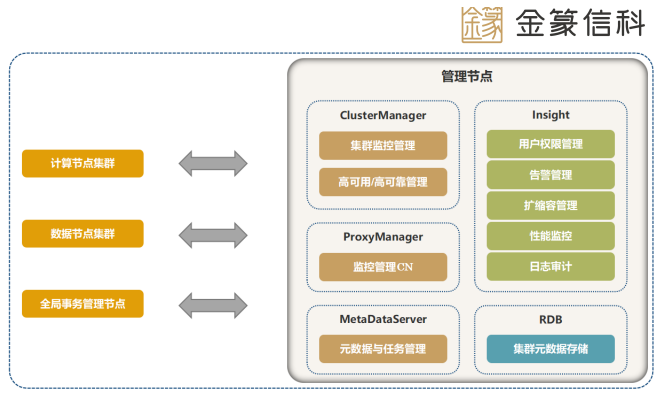 管理节点 在数据库中主要负责集群管理流程,给客户提供智能化运维管理平台,不涉及业务的访问流程,无负载压力。