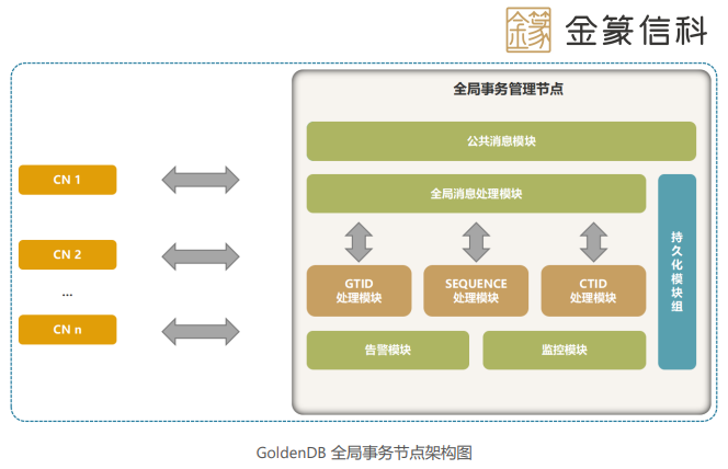 全局事务管理节点 在分布式数据库中维护全局事务的全生命周期,提供申请、释放、查 询全局事务的能力,保证了分布式数据的一致性。