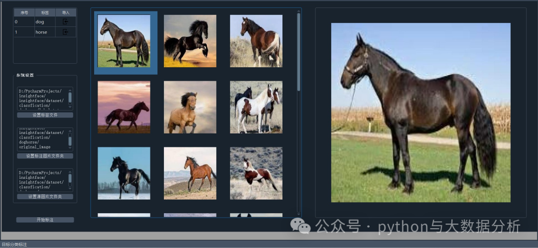 :点击“设置标注图片文件夹”按钮,选择用于存储标注后图片的子文件夹。选择后,文件夹的全路径将显示在对应的主界面上。 - 设置源图片文件夹