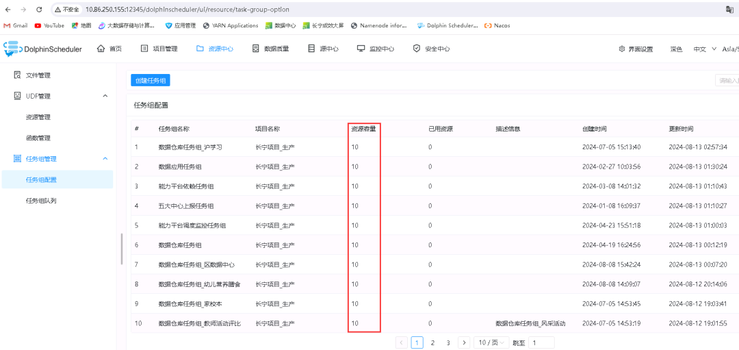 任务组容量默认值是10,且使用了功能 逻辑节点-DYNAMIC。