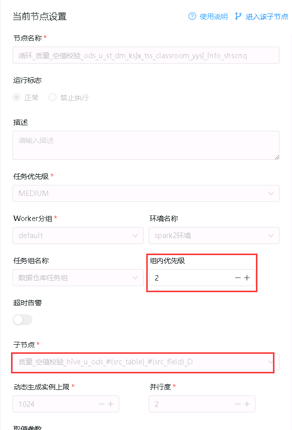 特点: 这个节点可以循环生成子任务,比如设置了20个循环参数,就会循环生成20个子任务,在子任务没有完全生成运行完成之前,这个循环任务会一直保持"运行中"状态,并占用任务组容量。
