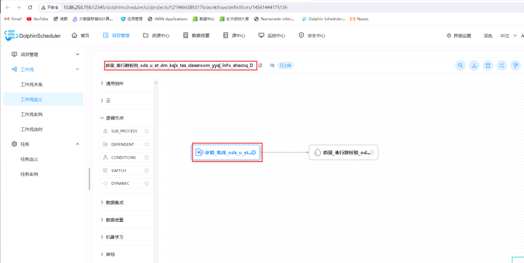 任务组容量默认值是10,且使用了功能 逻辑节点-DEPENDENT。