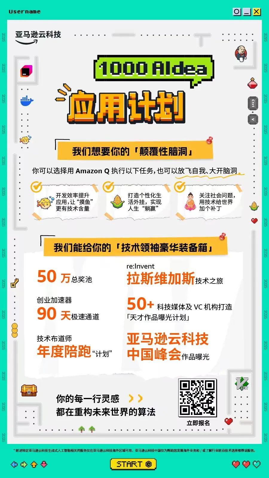 1000 Aldea应用计划由亚马逊云科技重磅发起,无论你来自哪个行业,是企业的CXO、技术人员、非技术人员亦或是高校学生均可报名参赛!使用Amazon Q Developer开发新应用,或对现有应用进行功能扩展、迁移优化、智能运维等改造皆可参与赛事评选。