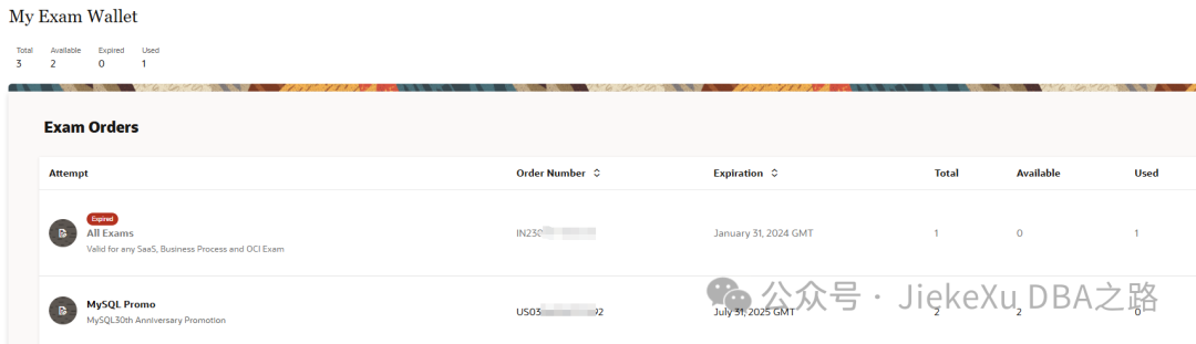 查看考券地址 My Exam Wallet:https://mylearn.oracle.com/ou/examcredits
