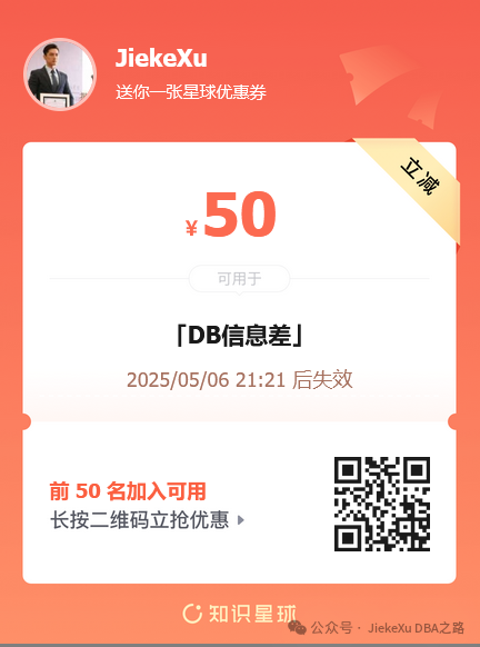 最后推荐一下会长成立了的知识星球《DB 信息差》,目前已经成员 160+, 现价 199元一年,200 人之后涨价到 399元~限时优惠券减免 50 即 149 元一年,还是很火爆的!这里是 DB 人的专属天地,致力于为你消除行业信息差。