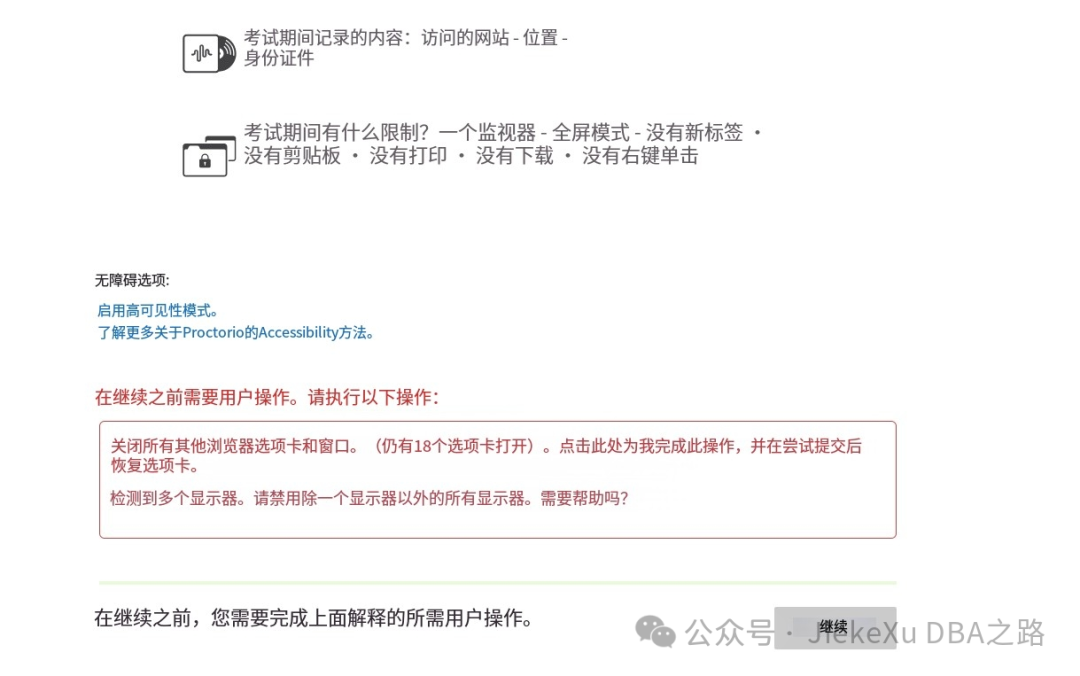 摄像头音频设备检查及插件下载: https://mylearn.oracle.com/ou/exam-unproctored/-/139184/220642 如下,我的 Google 还没有安装插件,点击下载跳转到 Google 商店下载,很遗憾访问不了要梯子,故这里建议使用 Edge 浏览器,不需要 VPN 就可以下载当然这里要通过 Oracle 账号登录才能到这个页面,然后获取插件Secure Exam Proctor,Edge 浏览器安装就行。