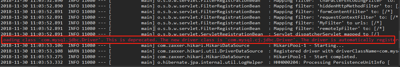 Loading class `com.mysql.jdbc.Driver'. This is deprecated. The new driver class is `com.mysql.cj.jdbc.Driver'. The driver is automatically registered via the SPI and manual loading of the driver class is generally unnecessary.