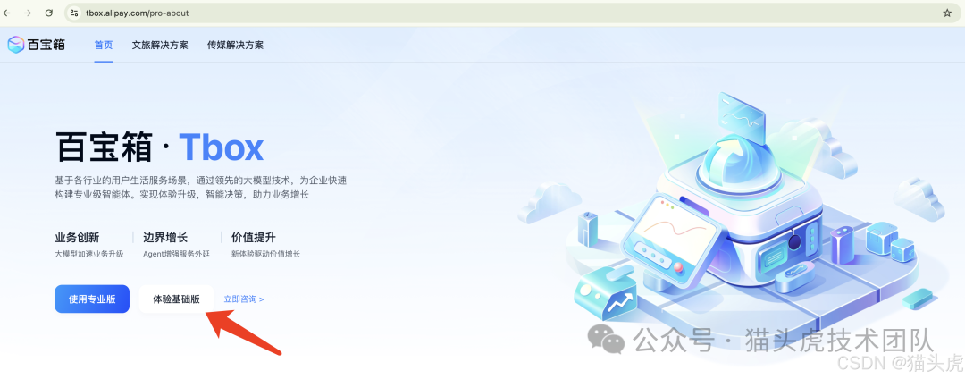 首先,打开蚂蚁百宝箱官网,使用支付宝账号登录平台,即可立即体验开发流程。