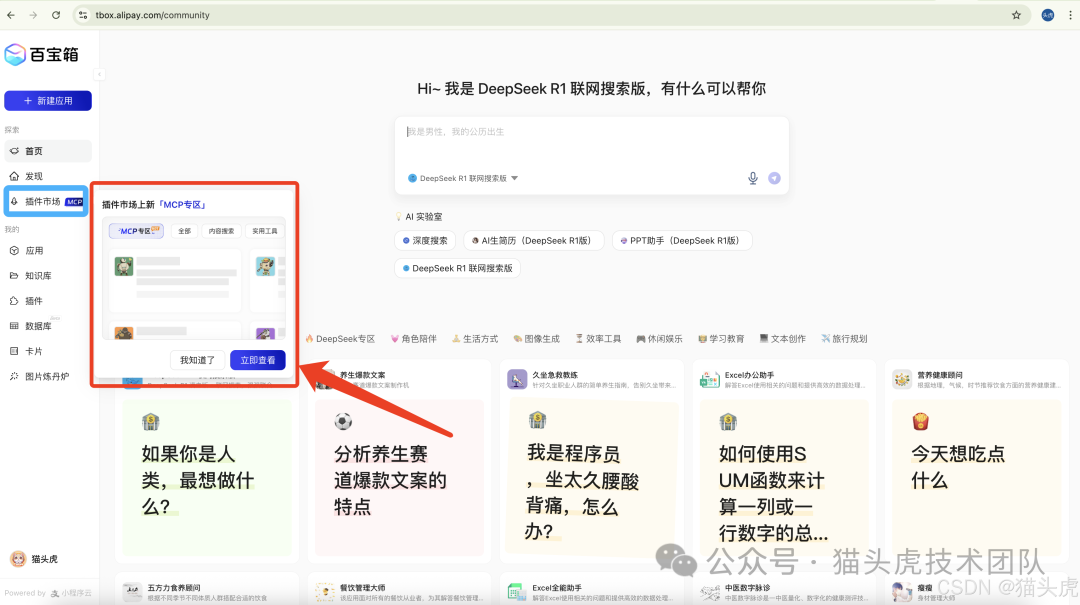 登录成功后,首页即可看到全新上线的MCP专区模块: