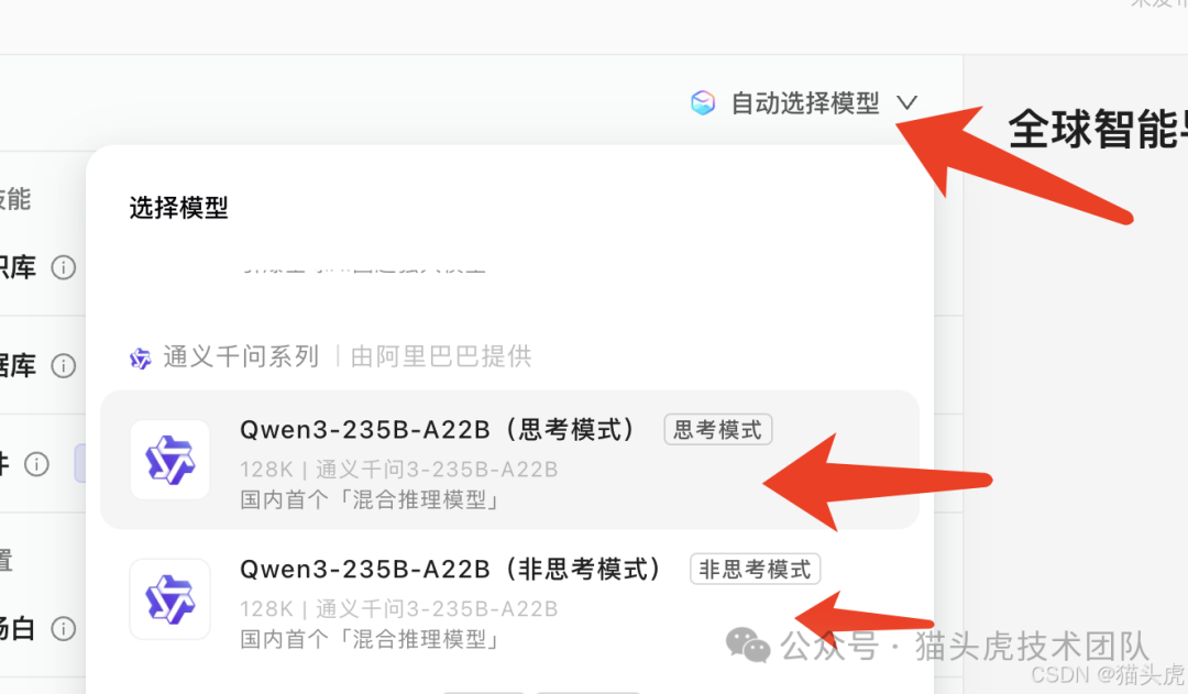 在应用配置页面右上角,选择推荐的大模型版本。