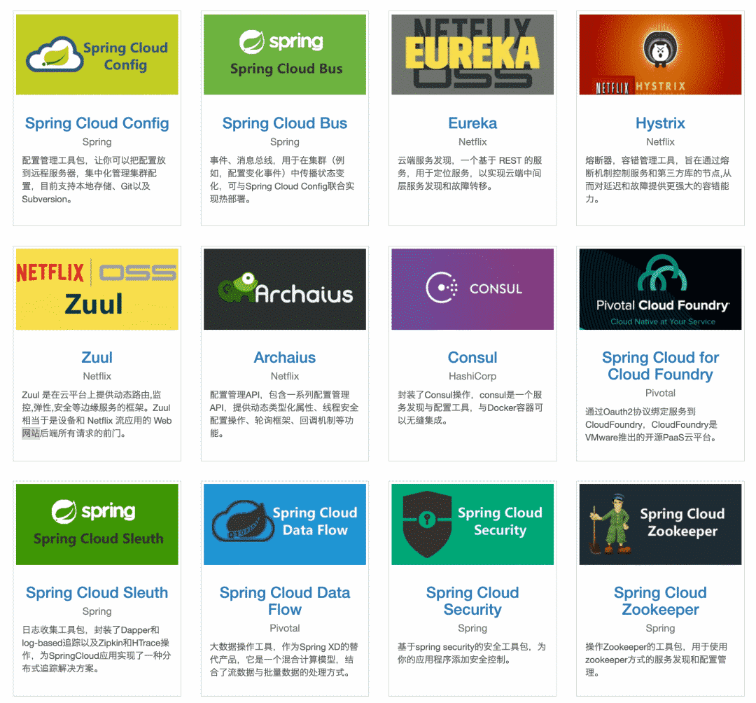 关于组件的详细介绍,我在 一文了解基于 Netflix OSS 的微服务架构 中也有介绍,这里就不再赘述了。