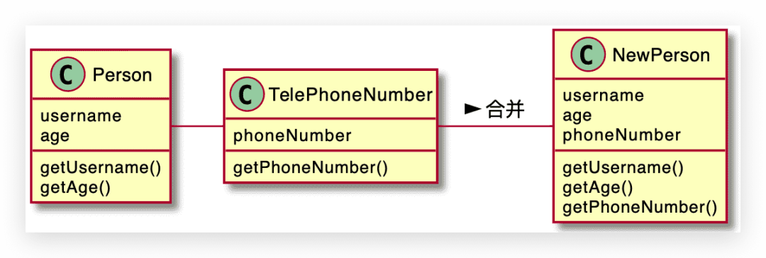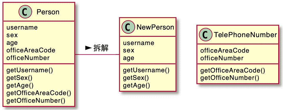 使用场景:当一个类变的过于庞大,并且承担很多不属于它的职责(通过类名来辨识)的时候,创建新类的分担它的工作