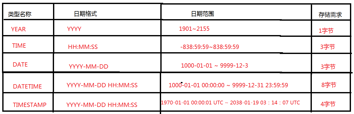 YEAR、TIME、DATE、DATETIME、TIMESTAMP