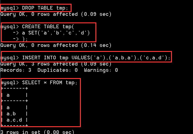 1、插入SET字段中的值如果有重复,则会自动删除重复的值